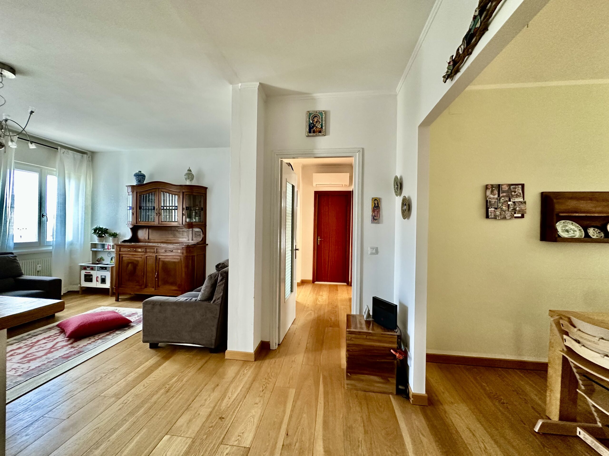 L’appartamento è stato completamente ristrutturato nel 2011, con rifacimento degli impianti idraulico ed elettrico, nuovi pavimenti e bagni moderni. Successivamente sono stati sostituiti anche gli infissi, garantendo un ottimo isolamento termico e acustico.
